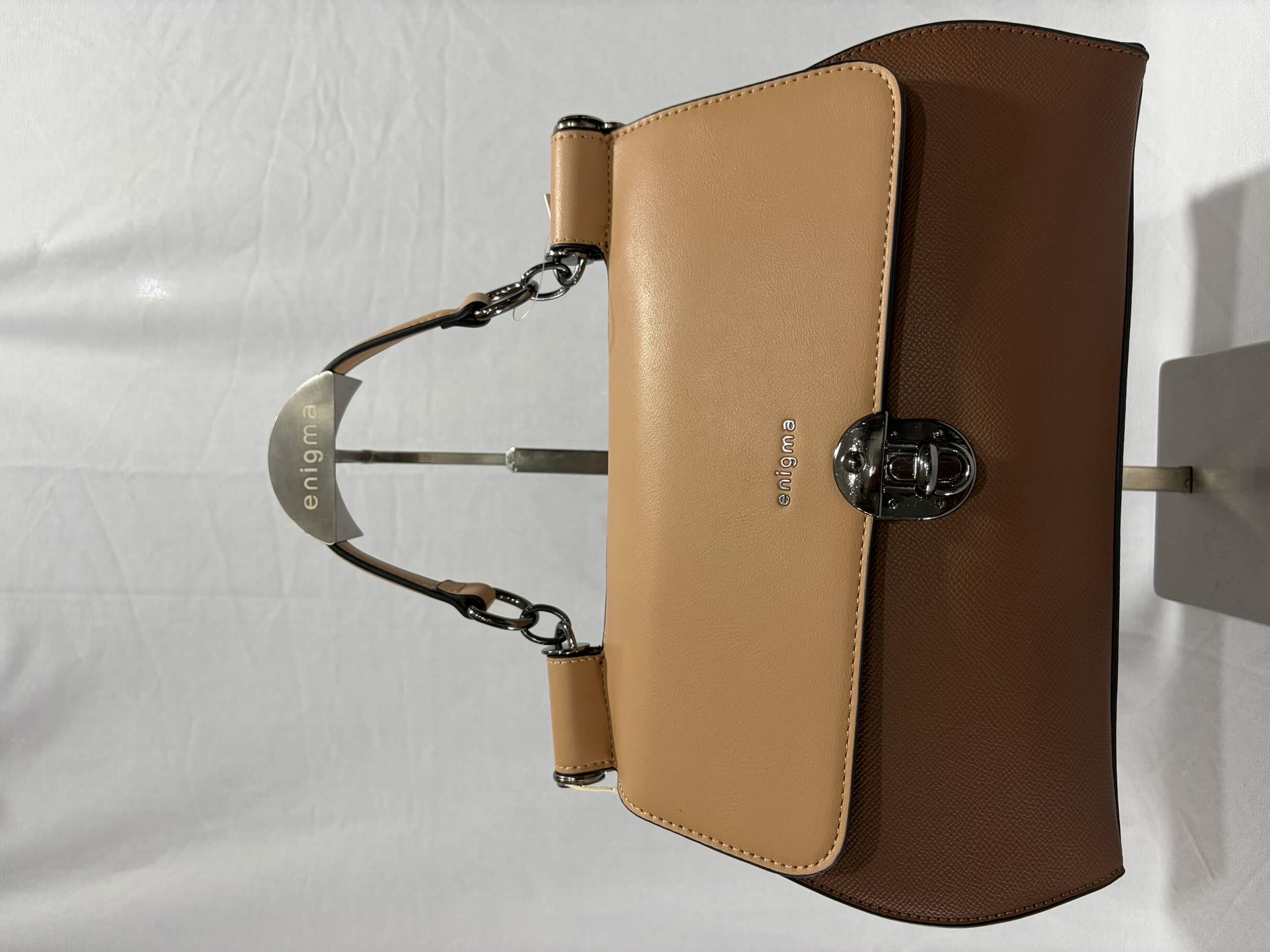 Minimal size lather handbag74242410 Brown shade lockable bag Suitable for western outfit
