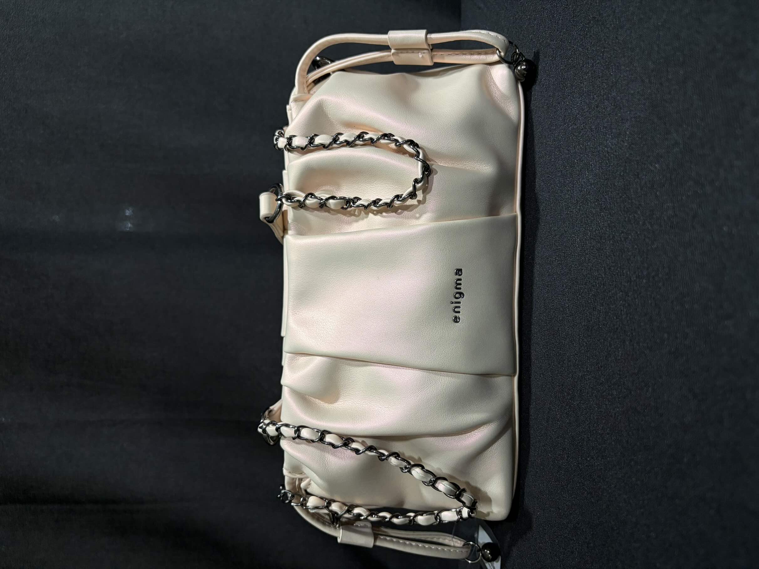 Enigma western sling bag75151529 Small size Baby pink colour Black metallic chain for belt